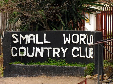 Despite the name, this one is not a country club at all, in our sense of the phrase. The Small World Country Club (photos at Africa – Sunday Lunch) turned out to be a very pleasant stop on our Machakos sojourn. Good food, pleasant surroundings (very beautiful and well cared-for) plantings, even a rabbit hutch right in the middle of the tables but, alas, no rabbit on the menu.